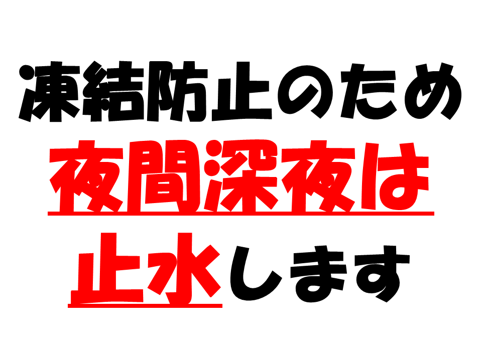 気温0度以下が見込まれる時は凍結防止のため水道を止水します。